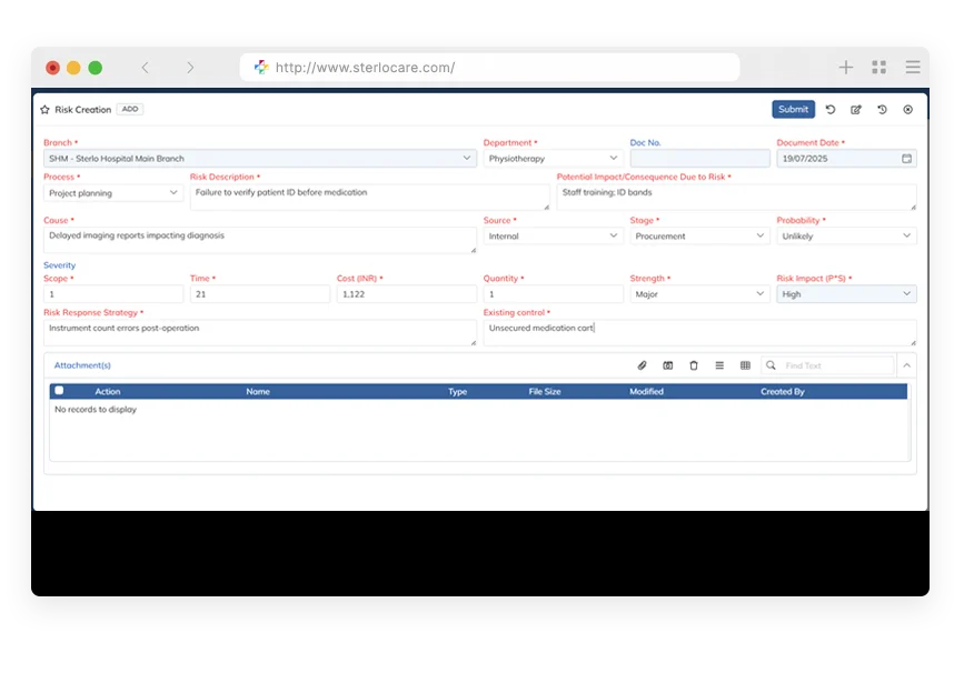 Sterlo Care empowers your hospital to manage risks comprehensively, ensuring compliance and minimizing risks across all operations.